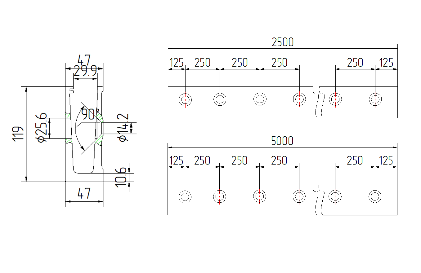 - Przekrój/wymiar 119x47mm
