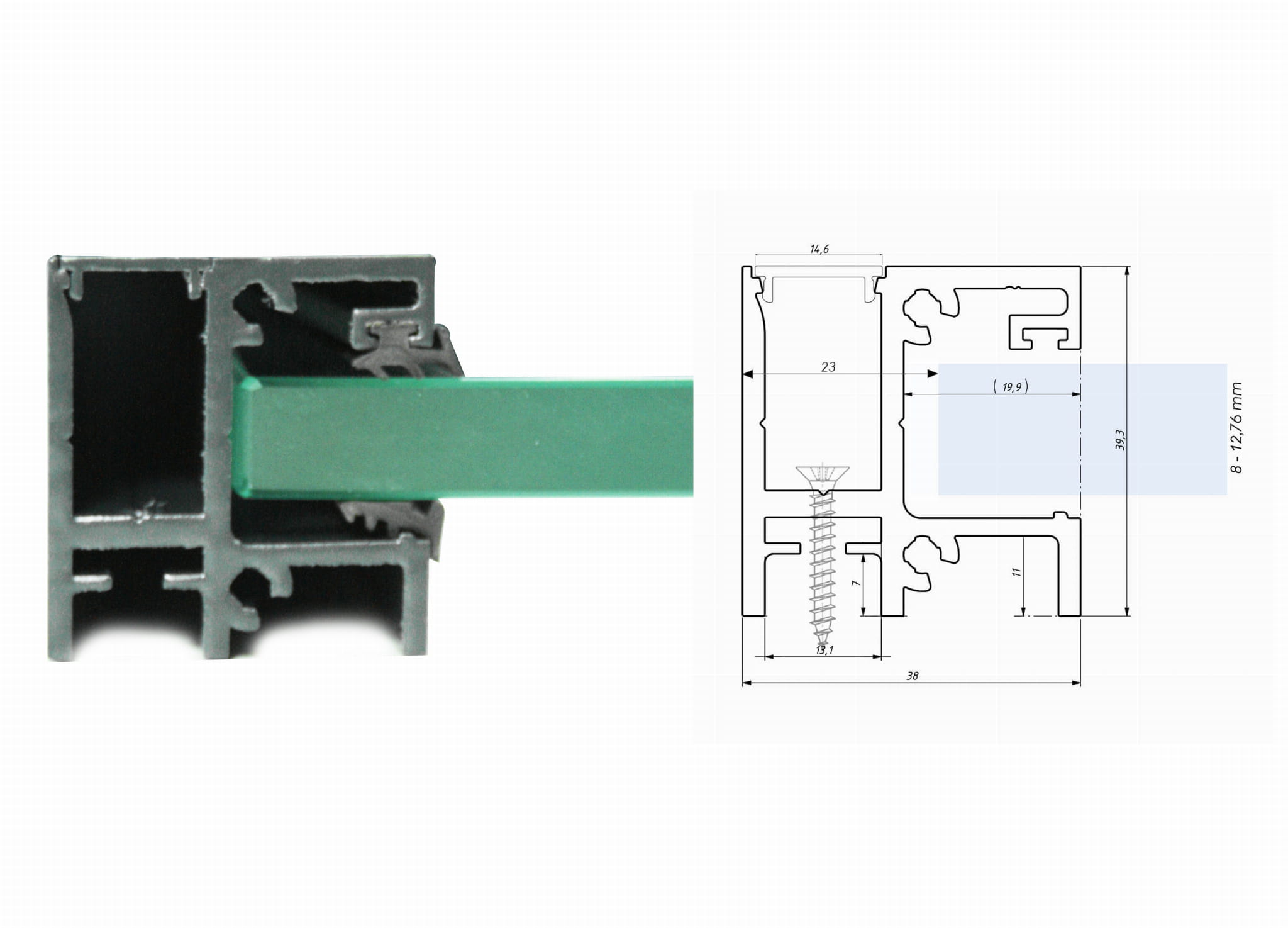 - Grubość szyby 8-12,76mm