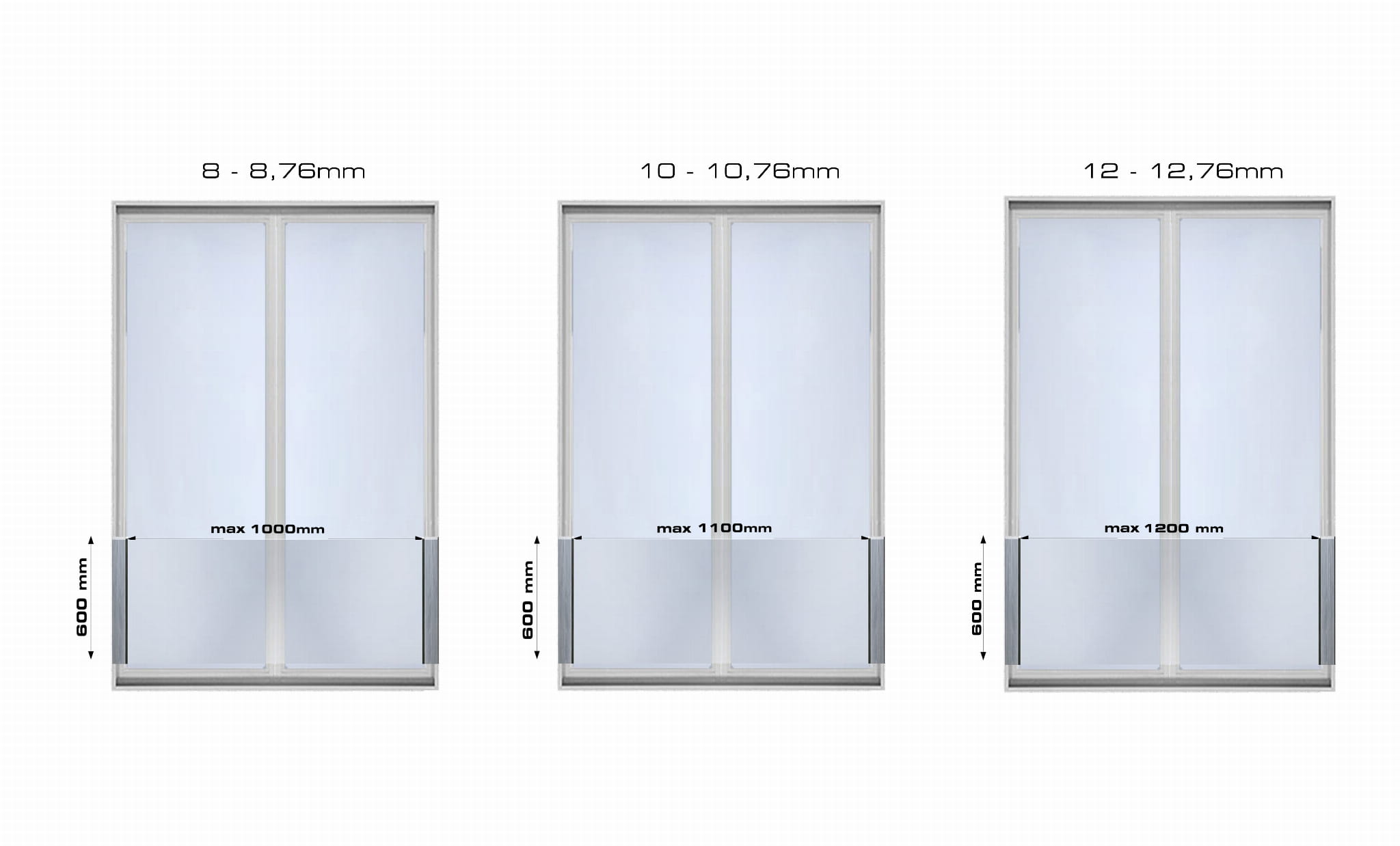 - Maksymalna wysokość szkła - 600mm